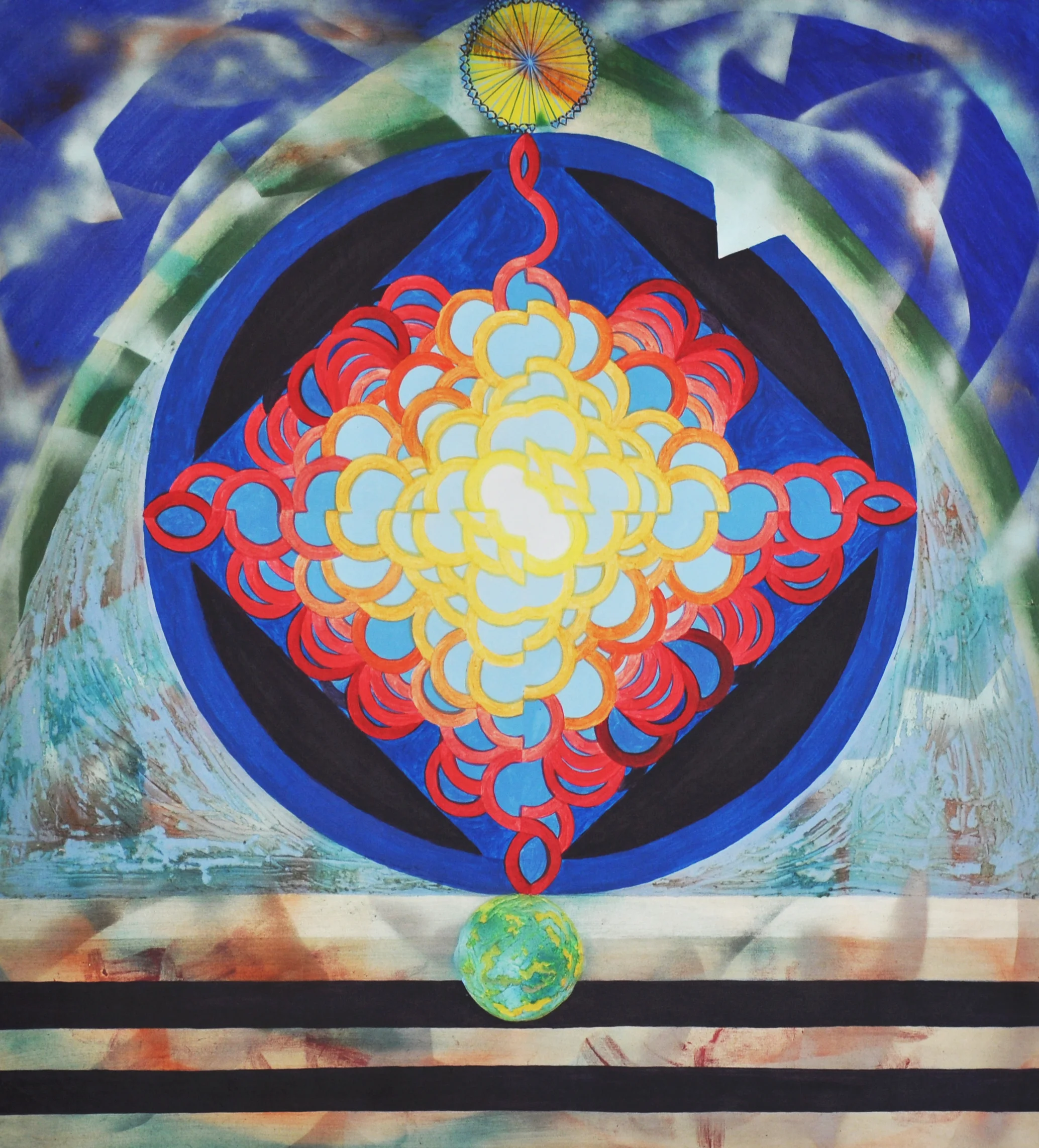 Ami Spangler is a life-long apprentice to beauty and art. The large acrylic-on-canvas paintings in this collection were inspirited by the microcosm, the macrocosm, cosmic rhythms, constellations, crystals and dancers. Spangler’s art investigates the unseen worlds of generative forces, formative forces, and the crystal lattices underlying the energy grids that condense into form – including the human form and expression. The artist’s ‘heroes’ who were significant and grounding include Chagall, Judy Chicago, Matisse, Monet, Georgia O’Keefe, and Rothko.